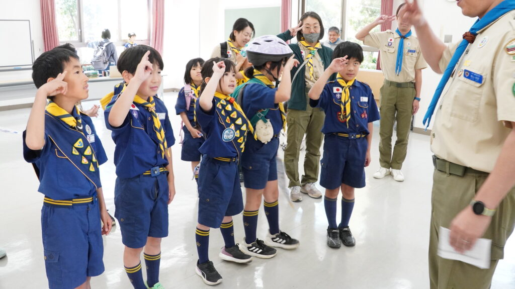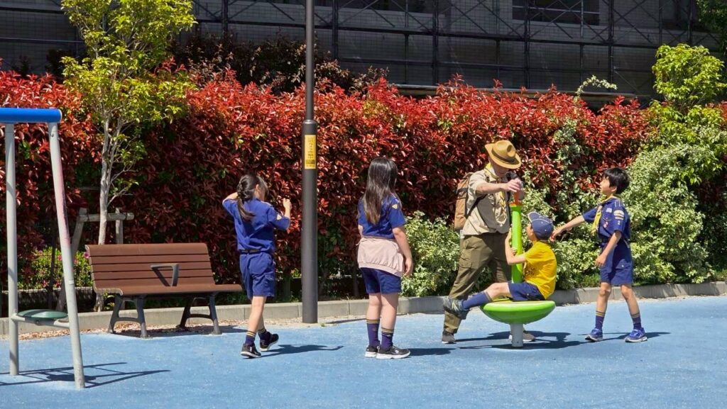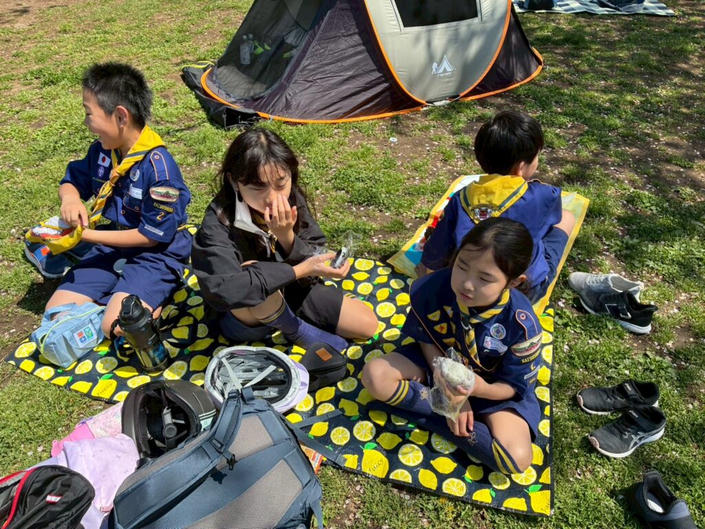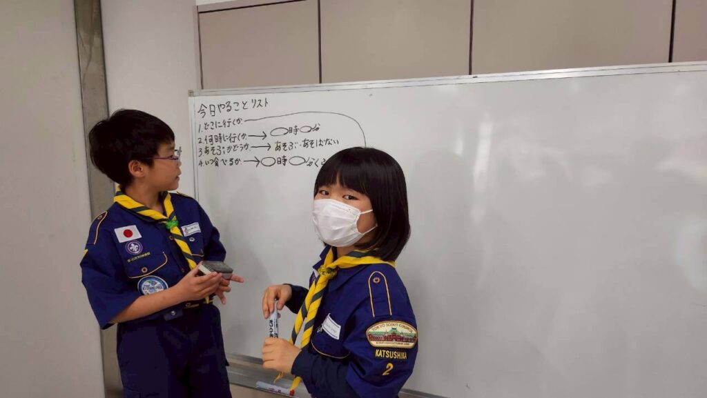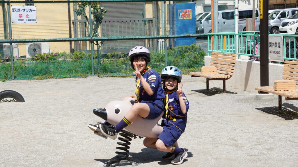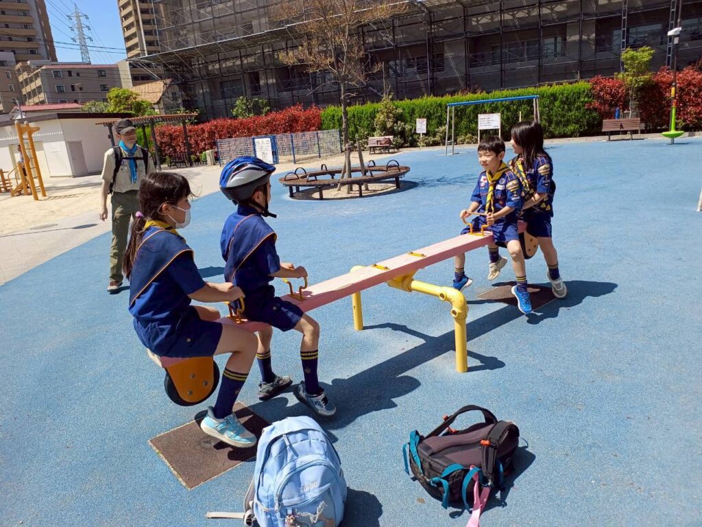 4月12日の集会では、「ぼくら公園ちょうさ隊」として、組ごとに自転車で地域の公園をめぐる活動を行いました。集会のはじめには、新任の次長の任命もあり、あらためて「組」で助け合って動くことや、それぞれの役割を意識する時間も持ちました。