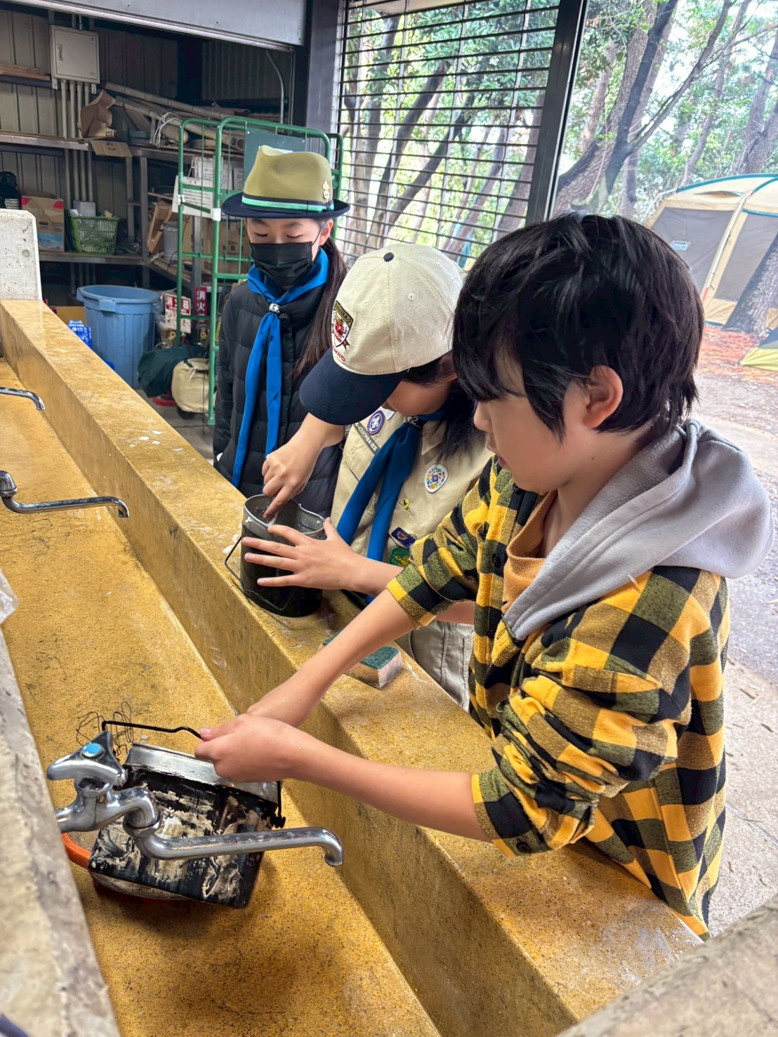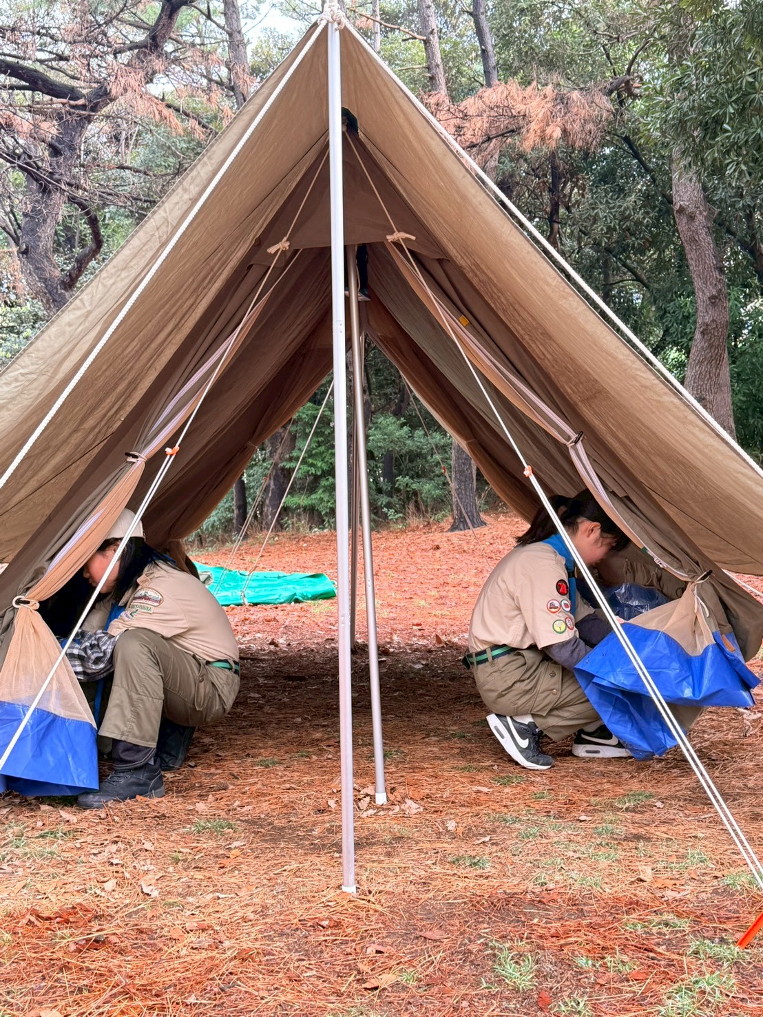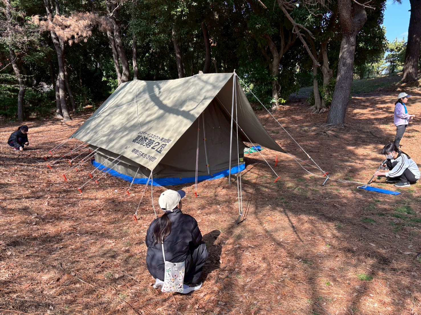 今回の春キャンプは、羽田空港が近くのみなとが埠頭キャンプ場で行いまいした。班対抗での班旗立てや火おこし対決を行ったり、飛行機が間近に見える城南島海浜公園までのハイキングを行いました。朝は雨上がりで肌寒かったですが、日中は快晴で次々と来る飛行機を見ながら、海までのハイクを楽しみました夜は皆で火を囲んで焼いたマシュマロはとっても美味しくかったようです9月から上進したスカウト達も、テントの設営や野外炊事もかなり慣れてきました!